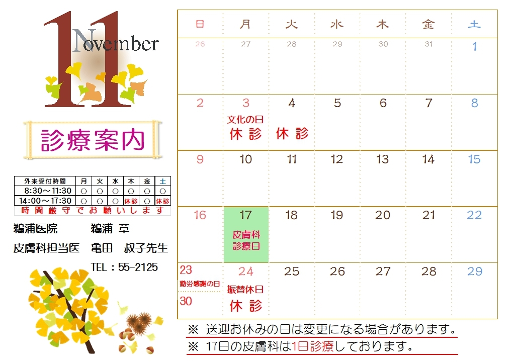 診療 | 月 | 火 | 水 | 木 | 金 | 土 |